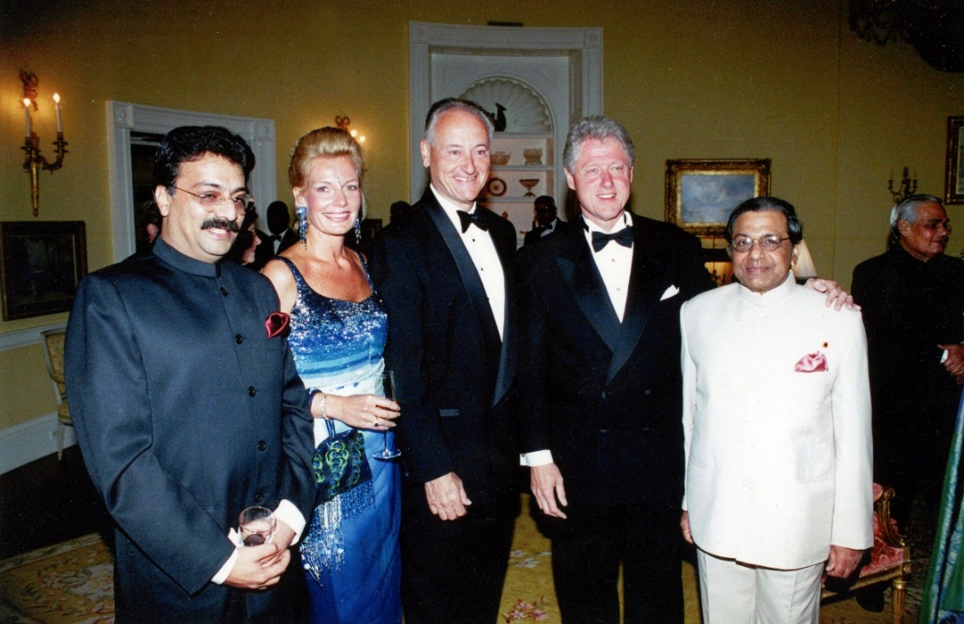 From Left: Ranjan Bhattacharya, Mrs. Celeste, Richard Frank Celeste, Bill Clinton and NK Singh