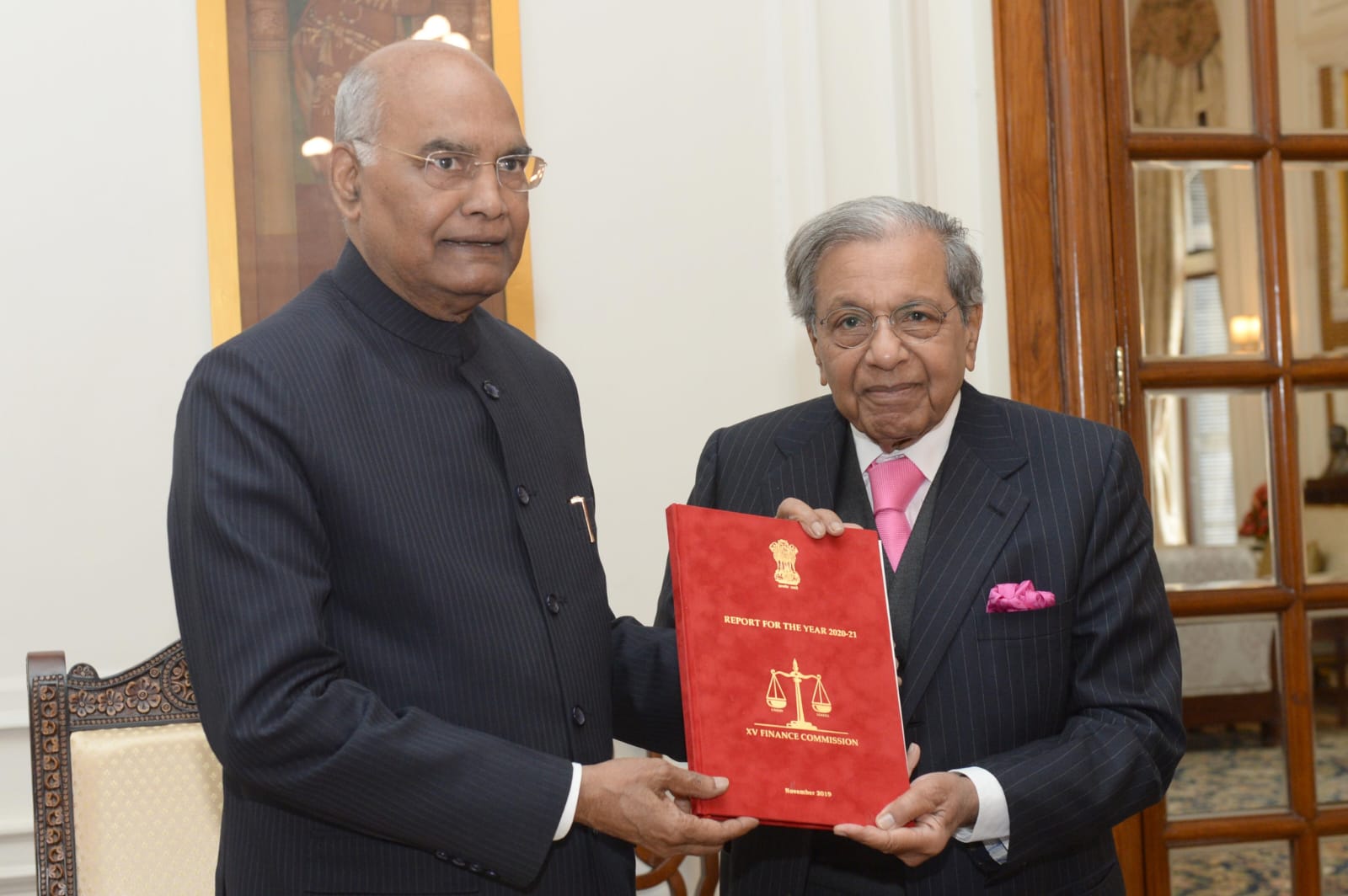 Presenting the first report of the XV Finance Commission (2020-21) to President Ram Nath Kovind