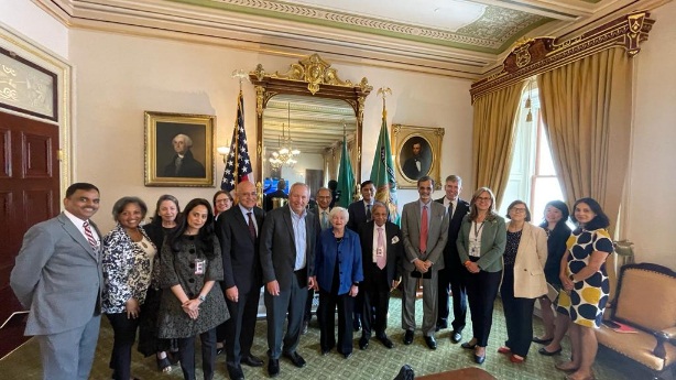 Ms. Janet Yellen United States Secretary of the Treasury, Larry Summers, Anantha Nageswaran, Ravi Kota, Minister Economic, Indian Embassy, DC, Deepak Mishra, Director, ICRIER