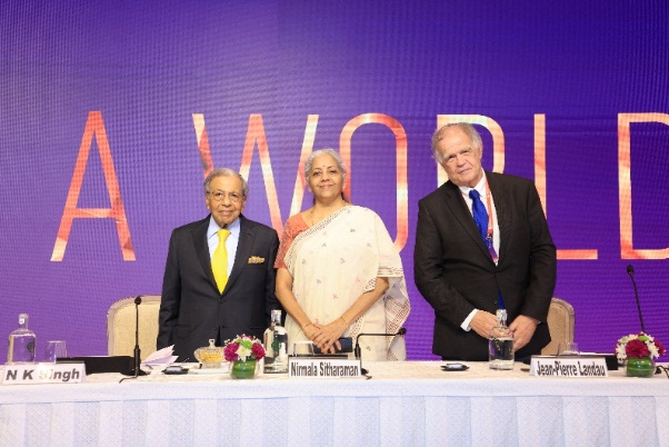 NK Singh, Jean-Pierre Landau with FM Nirmala Sitharaman