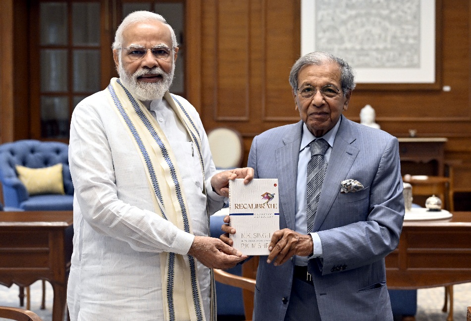 Presenting copy of book recalibrate to PM Modi