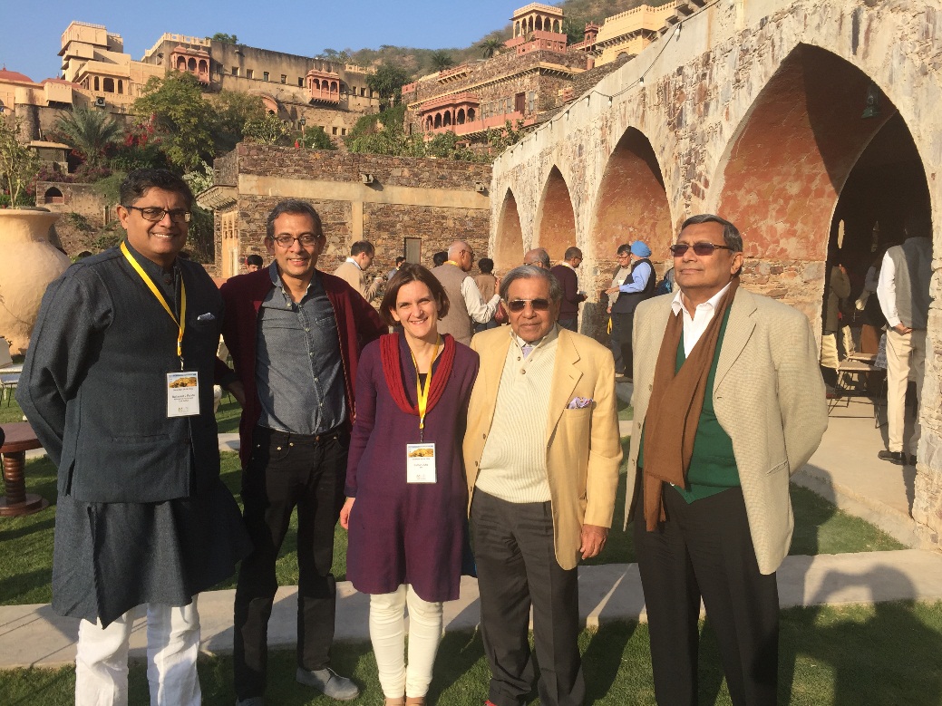 Baijayant Panda, Nobel laureate in Economics Prof. Abhijit Banerjee & Prof. Esther Duflo at Neemrana Conference